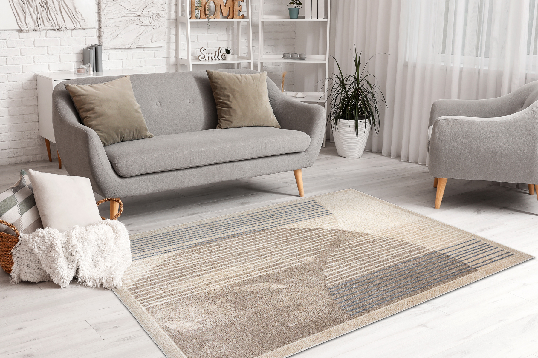 FUSION kilimai idealiai dera su skandinaviško, industrinio ar boho stiliaus interjerais. Subtilūs smėlio, pilkos, pudros rožinės ar garstyčių geltonos atspalviai puikiai papildo natūralius interjerus ir minimalistines baldų formas.